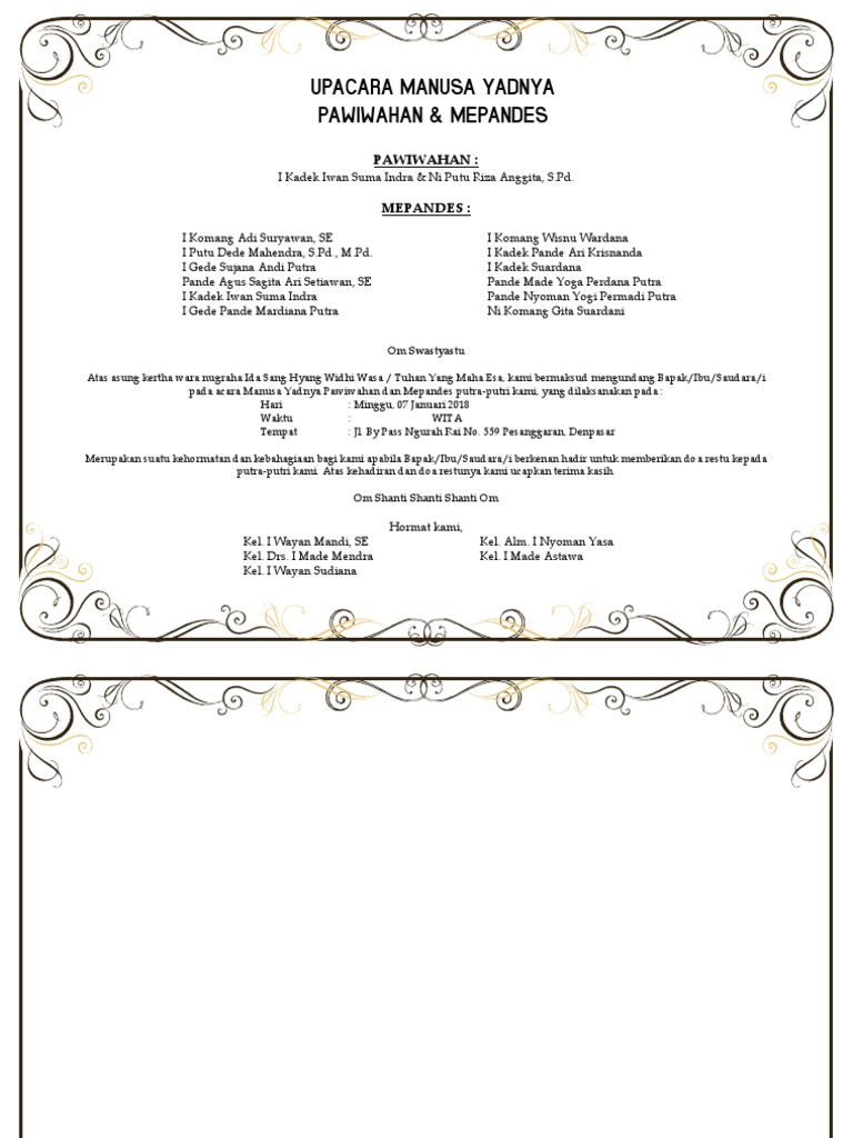 Kartu undangan mepandes image results. Informasi undangan yang kami bagikan semoga menjadi informasi terbaik dan bisa benrmanfaat untuk semua khususnya informasi tentang contoh surat undangan mepandes bahasa bali terbaru 2020 yang semuanya kami kumpulkan dengan serapih mungkin. Undangan pernikahan murah harga rp 1000.